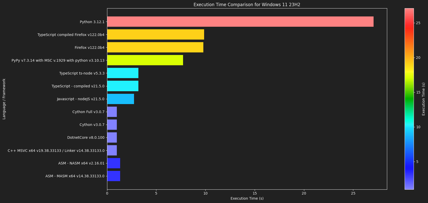 plt.title('Execution Time Comparison for Windows 11 23H2')