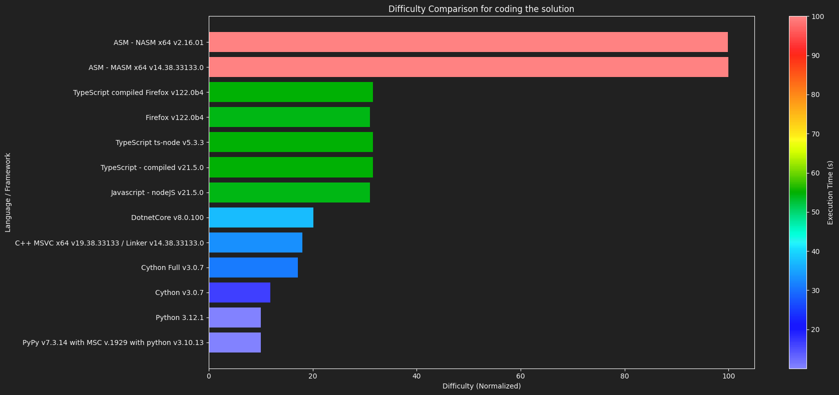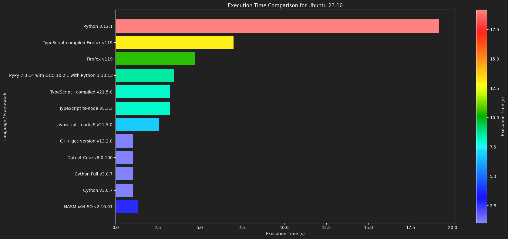 bars = ax.barh(languages, execution_times, color=colors)